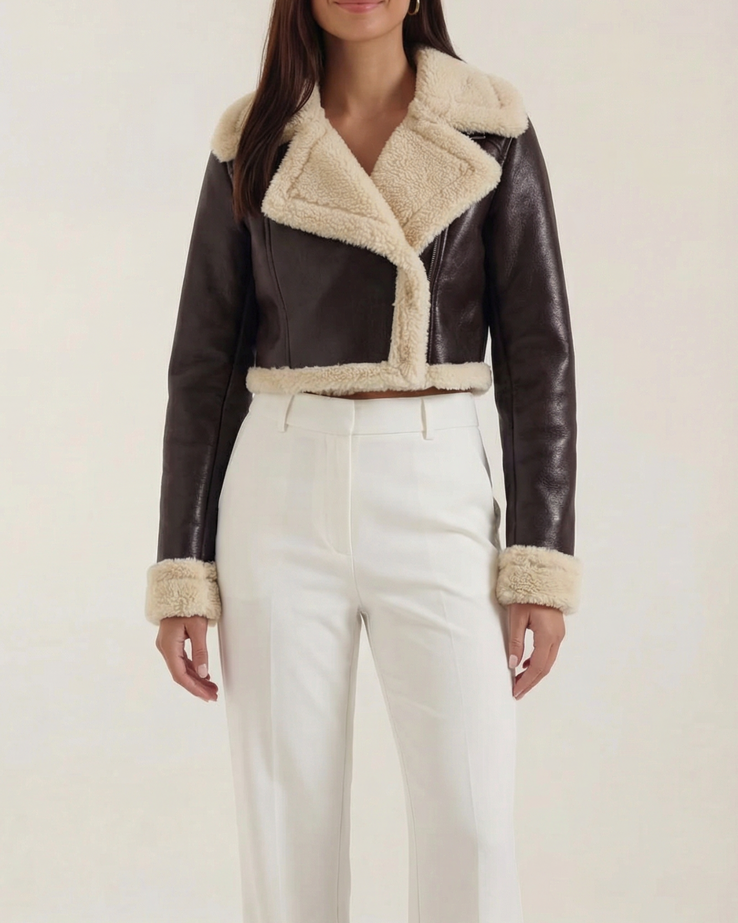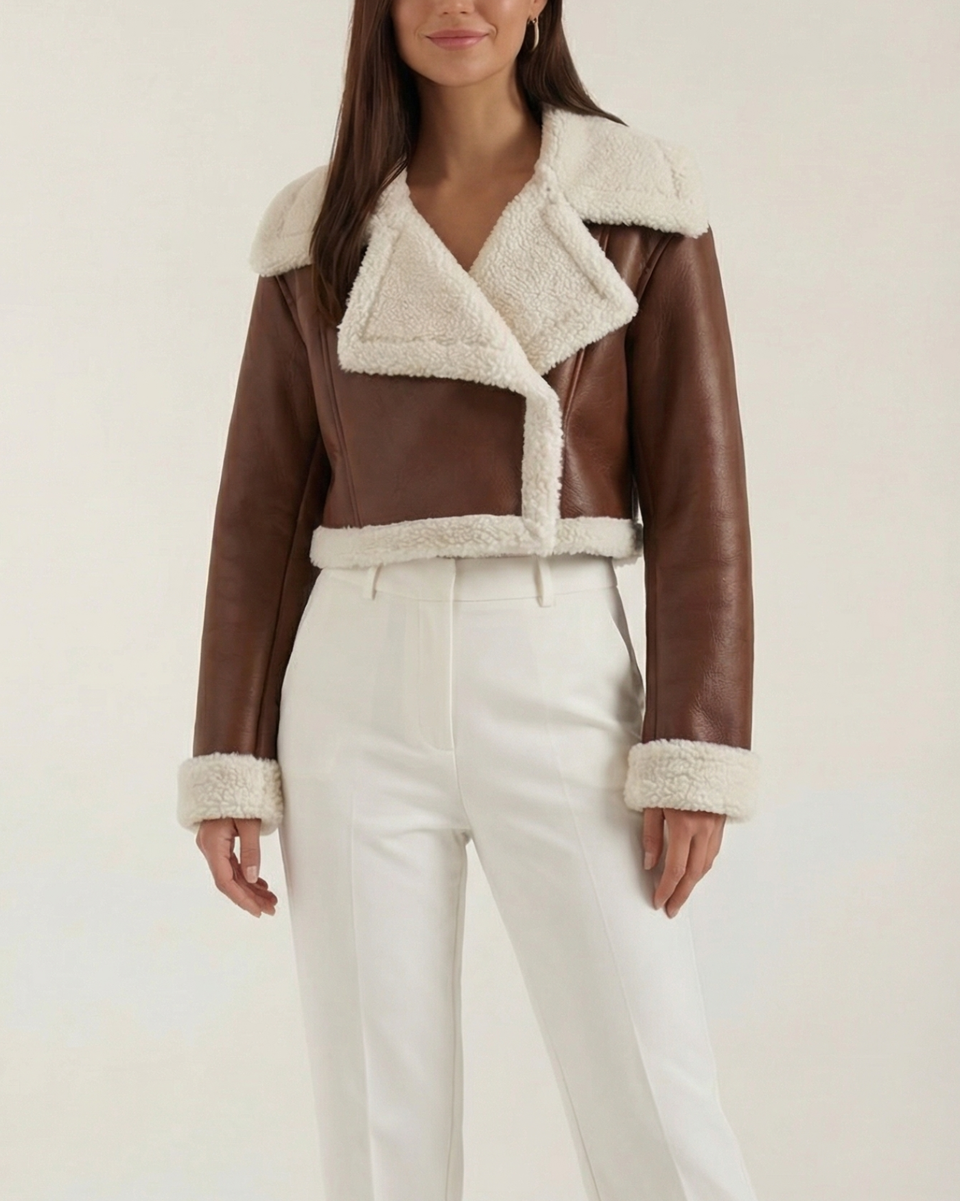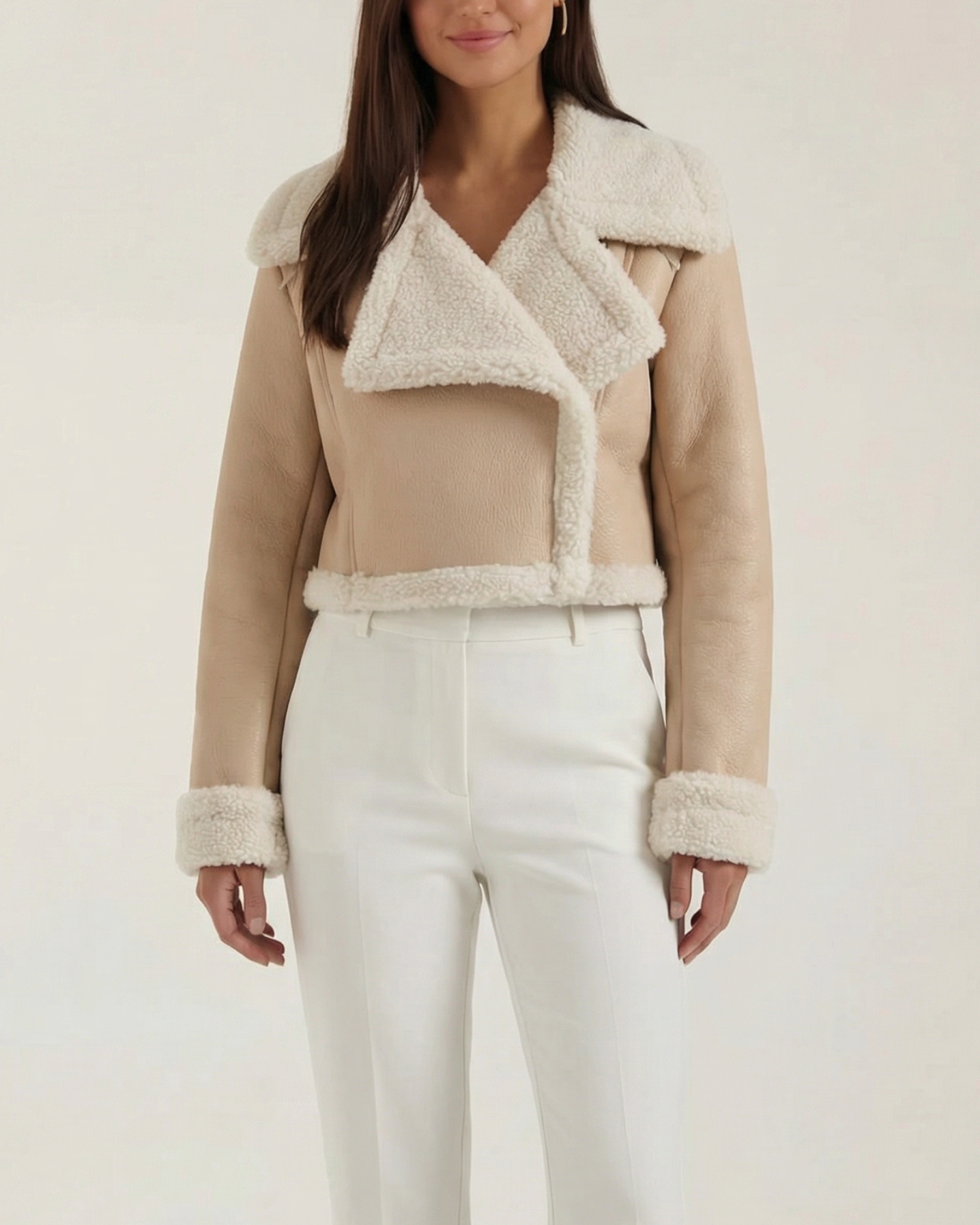 A cropped fleece jacket with a cloud-soft lining. Lightweight warmth that sits at the natural waist — perfect for layering over tees or dresses.