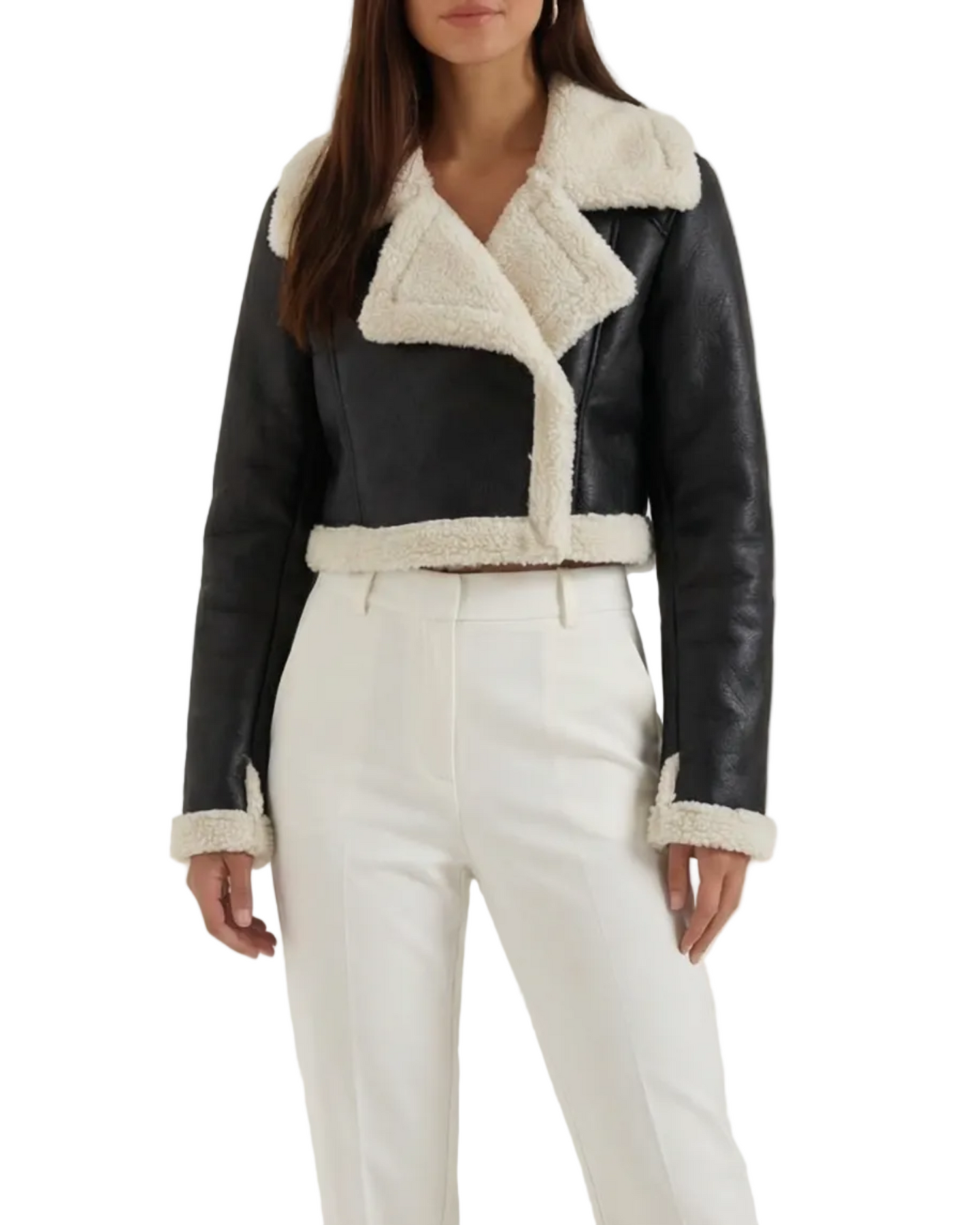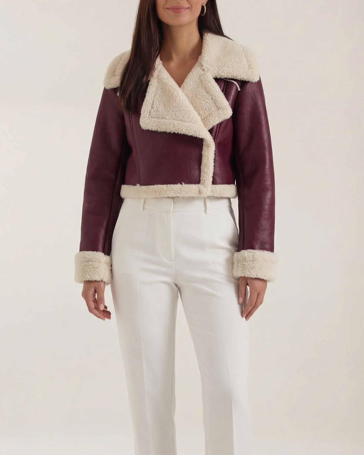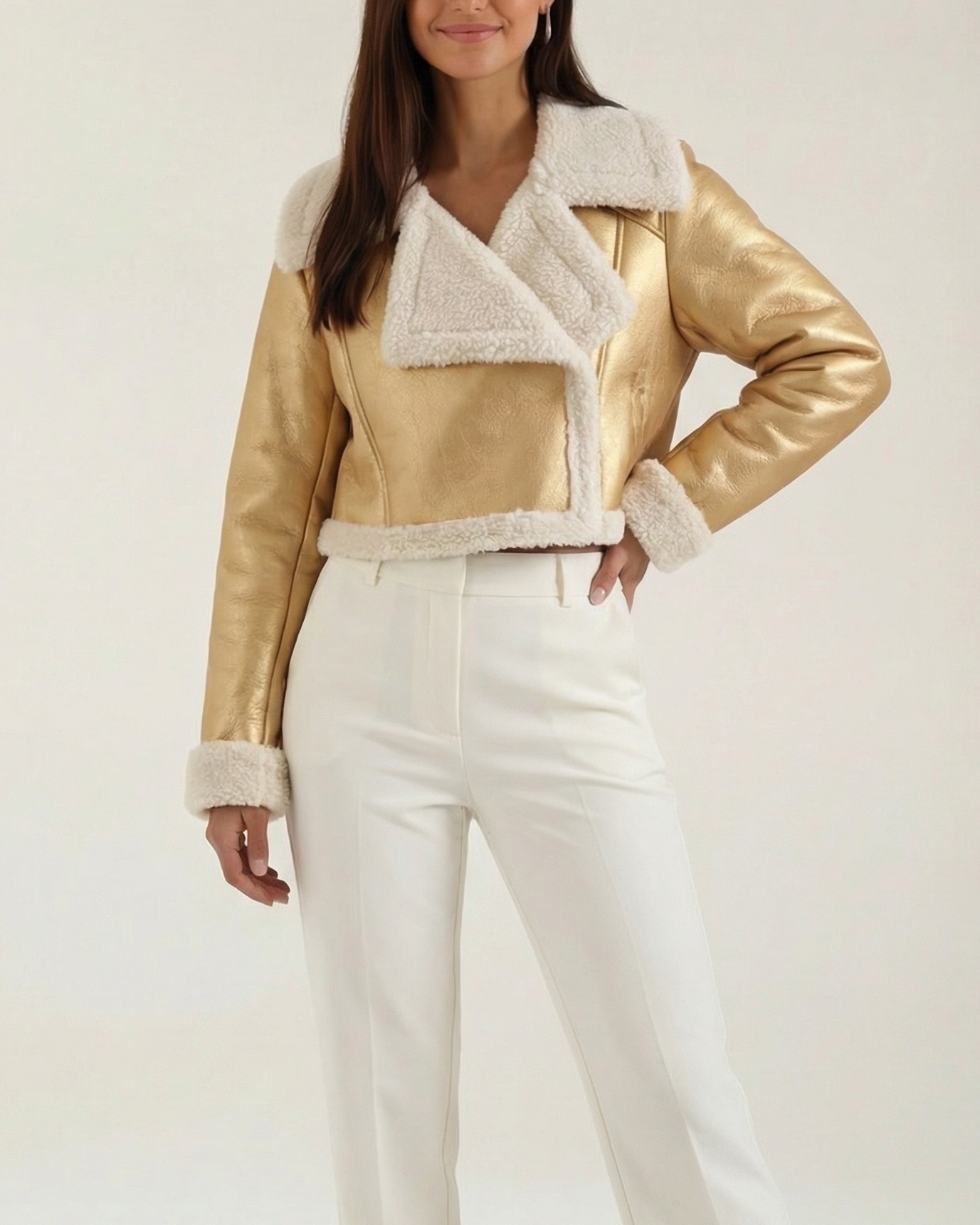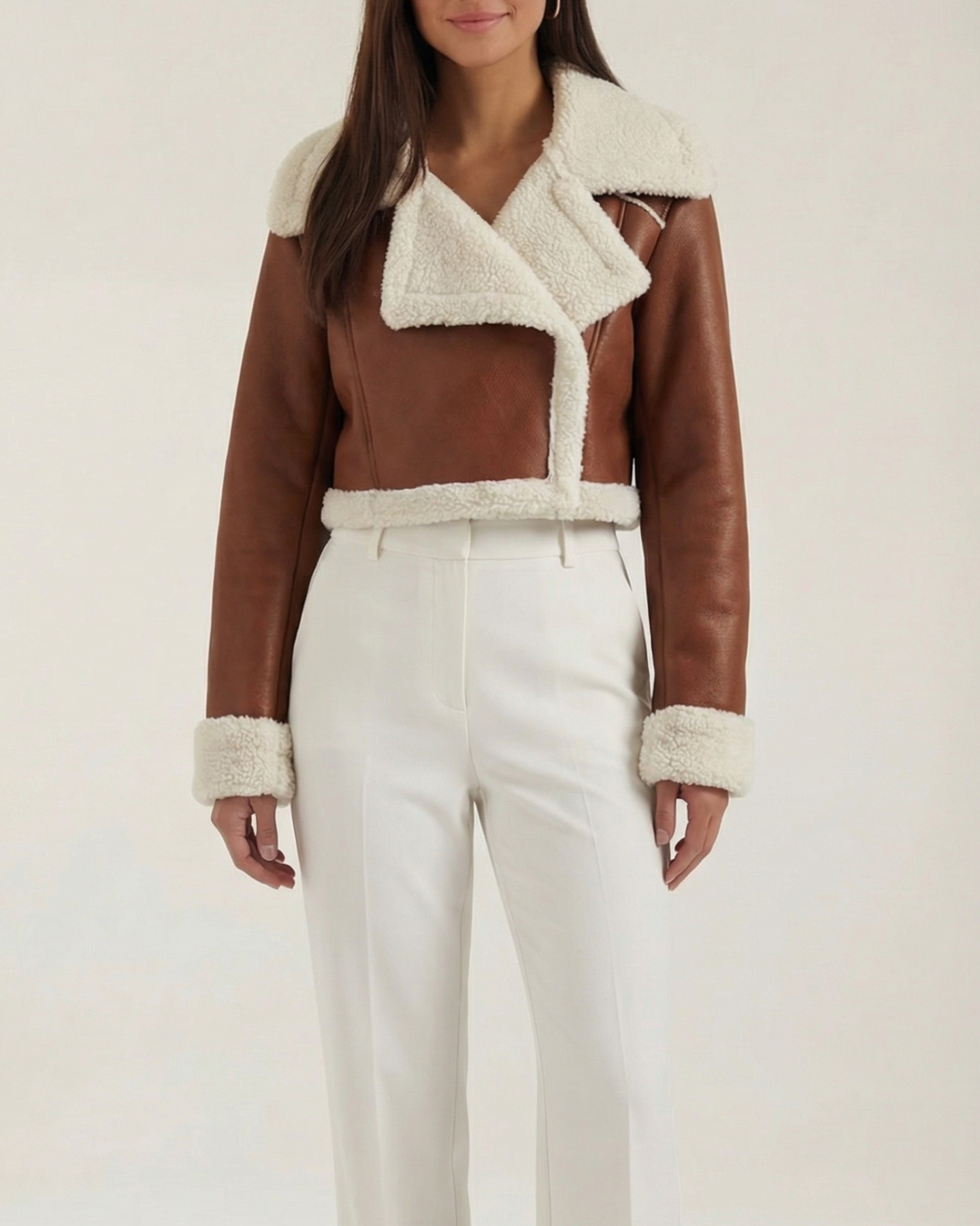 A cropped fleece jacket with a cloud-soft lining. Lightweight warmth that sits at the natural waist — perfect for layering over tees or dresses.