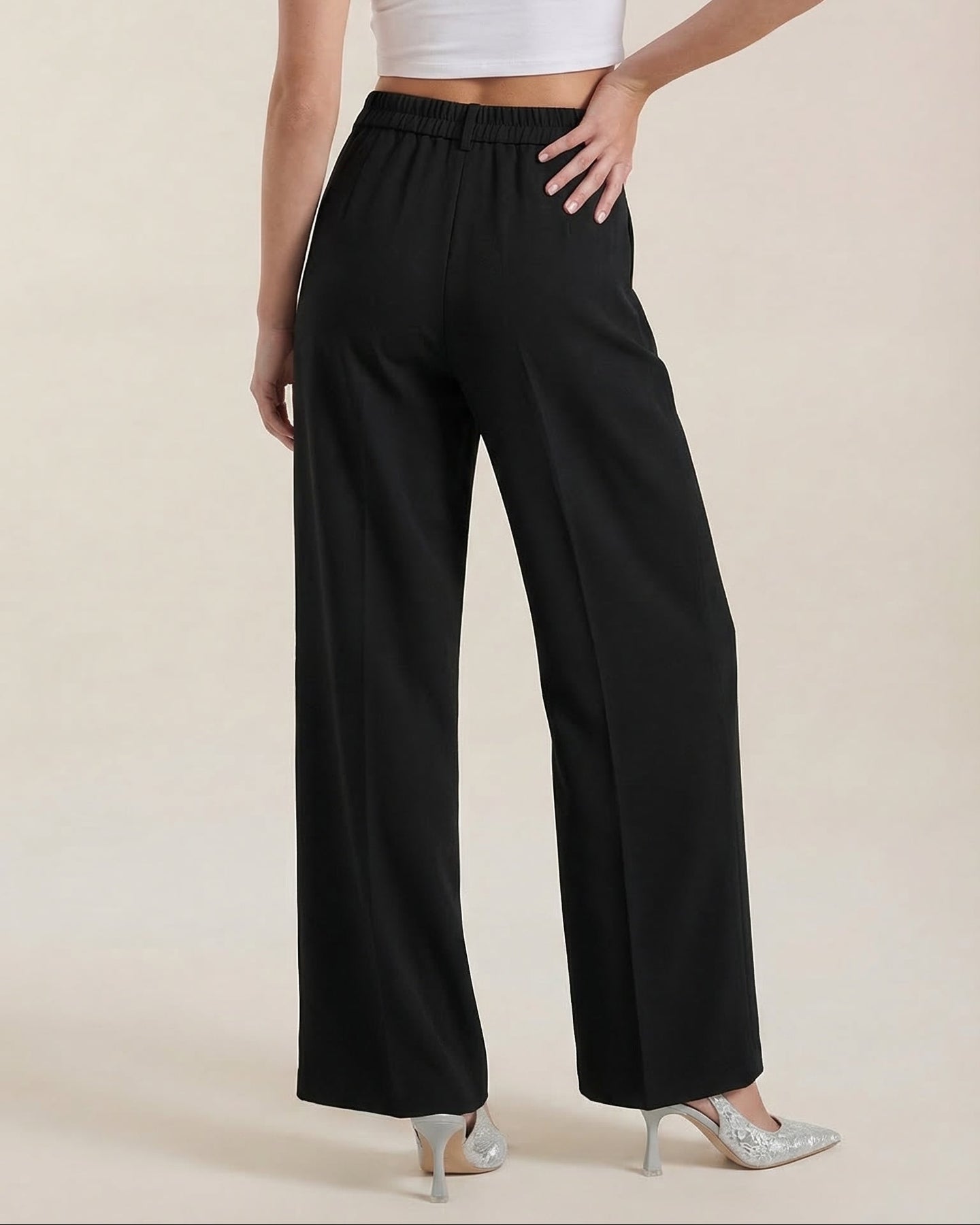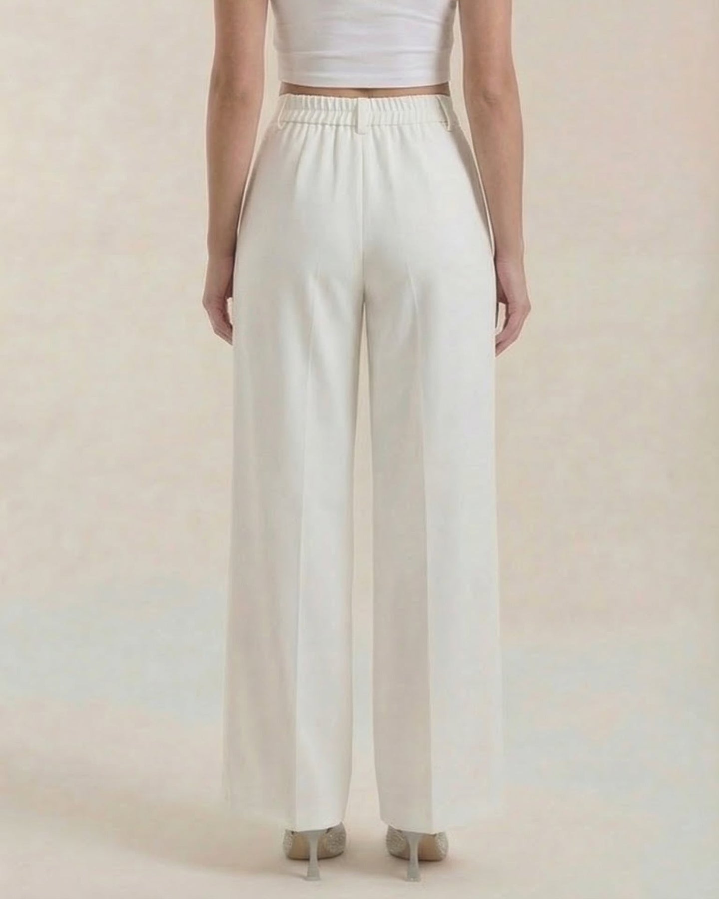 High-waist wide-leg trousers with a flowing, breezy silhouette. Flattering at the hip and easy to pair from the office to a casual day out.