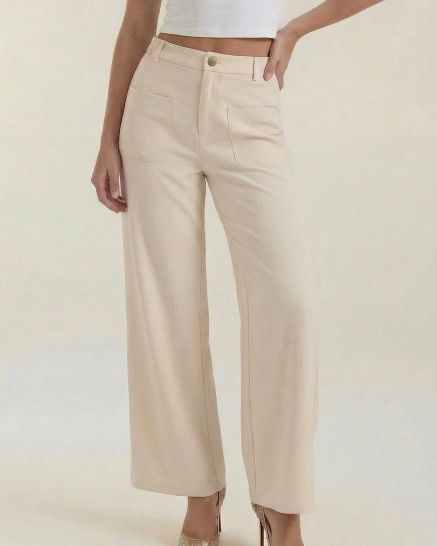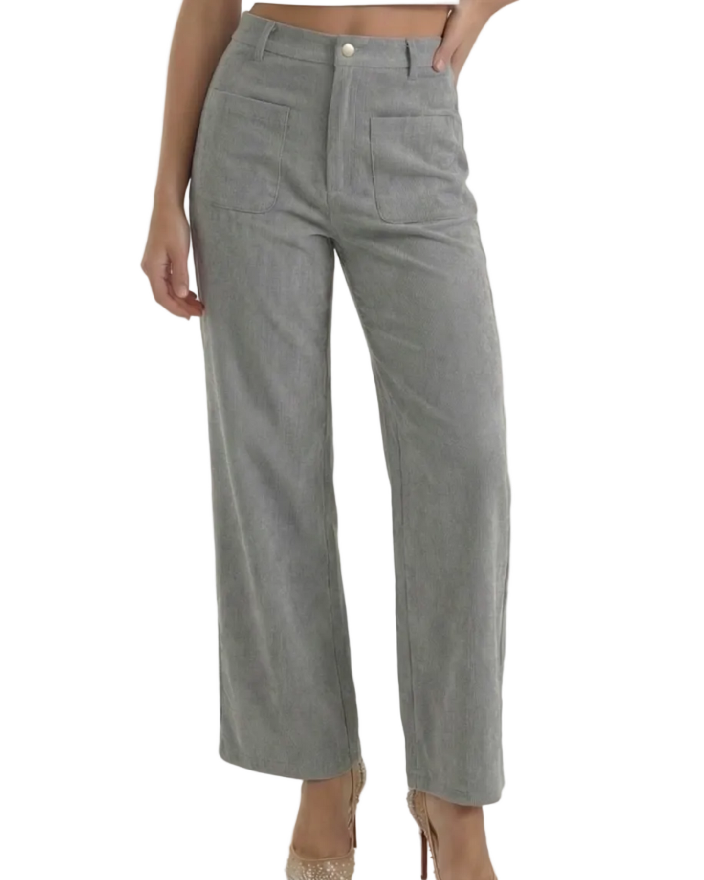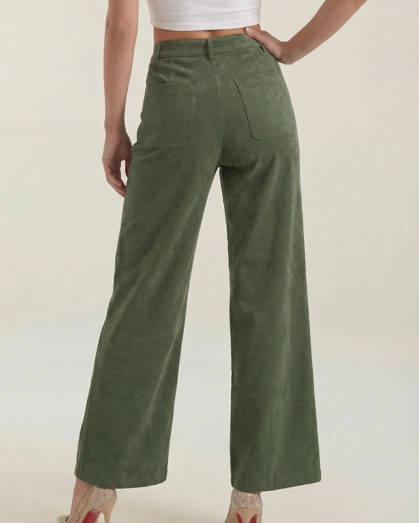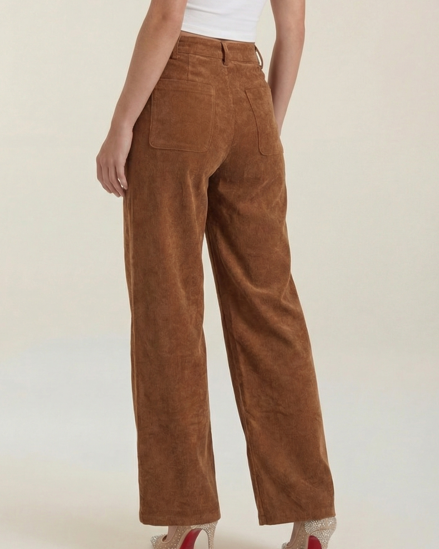 High-waist wide-leg trousers in a soft corduroy with front pockets. Flows beautifully when you walk — retro feel with a modern fit.